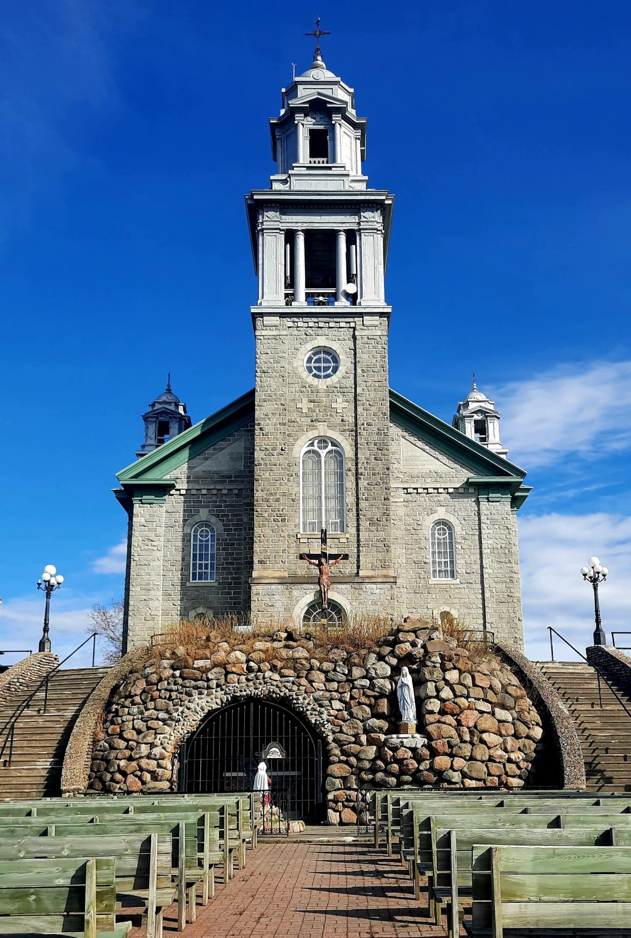 Située sur une colline surplombant le fleuve Saint-Laurent, l’église Notre-Dame-de-Lourdes de Mont-Joli se distingue par son architecture en granit provenant de la région de la Beauce. Elle s’inscrit dans l’histoire de la paroisse, officiellement reconnue en 1905. À proximité de l’église, une grotte dédiée à Notre-Dame-de-Lourdes a été aménagée en 1928, devenant au fil du temps un lieu de recueillement apprécié. Mont-Joli, anciennement connue sous le nom de Sainte-Flavie Station jusqu’en 1912, s’est développée comme un carrefour industriel, commercial et ferroviaire. L’établissement d’un sanatorium et d’un aéroport régional a également joué un rôle clé dans le dynamisme de la ville.