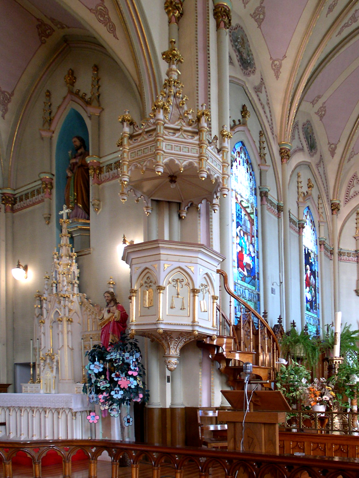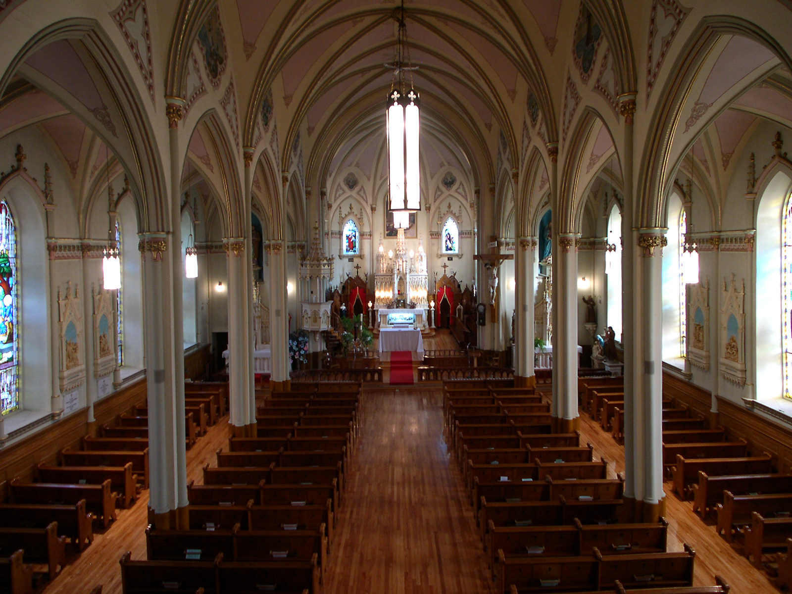L’église Saint-Alexandre-d’Iberville témoigne de plus de 175 ans d’histoire enracinée dans un ancien territoire seigneurial du 18e siècle. La paroisse a été officiellement fondée en 1850, à la suite de l’arrivée croissante de familles francophones dans une région jusque-là peu peuplée. Une première chapelle en bois est construite peu après, suivie de l’église actuelle, érigée en pierre et bénite en 1854. Avec le temps, le bâtiment a été agrandi et restauré à plusieurs reprises pour répondre aux besoins d’une communauté en pleine croissance. Conçue par le célèbre architecte Victor Bourgeau, l’église est un bel exemple d’architecture néogothique d’inspiration médiévale, avec ses voûtes élancées, ses flèches et ses vitraux remarquables signés Hobbs de Montréal. Elle conserve encore aujourd’hui une grande partie de son décor d’origine. Un petit musée sur place permet aux visiteurs de plonger dans le passé de la paroisse et de découvrir des objets liturgiques, des photos anciennes et des éléments d’architecture qui témoignent de la richesse du patrimoine local.