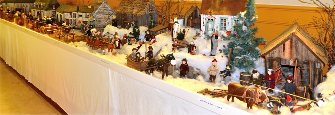 En un monde de miniatures, l’exposition exprime les traditions populaires, les métiers traditionnels, la vie de famille ainsi que la dimension intergénérationnelle qui teintait les activités quotidiennes d’autrefois. Elle met en scène le temps des sucres, des semences, des labours; nos hivers québécois, la messe de minuit, nos camps de bûcherons et les artisans villageois. Les pièces de l’exposition sont tirées de la Collection du Musée l’Atelier du voiturier, œuvre mémorable de Daniel Pouliot et Simone Corriveau, un couple Michelois passionné pour la modélisation en miniatures. L’œuvre gigantesque s’échelonnant sur deux décennies de passion et de travail méticuleux est digne des grands maquettistes professionnels et d’une grande valeur pour l’histoire populaire du Québec. Un véritable hommage à la mémoire d’un passé révolu !