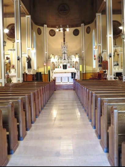 It was during Rev. J. C. Poulin’s pastorate from 1894 to 1901 that the present brick presbytery was built on the site of the original building erected 50 years before.During the pastorate of Rev. John T. McNally, which extended from January 1906 to 1911, a number of major improvements to the church were accomplished. All the interior walls and ceilings were artistically decorated after the style of many old European Catholic shrines, and stained-glass windows were installed.